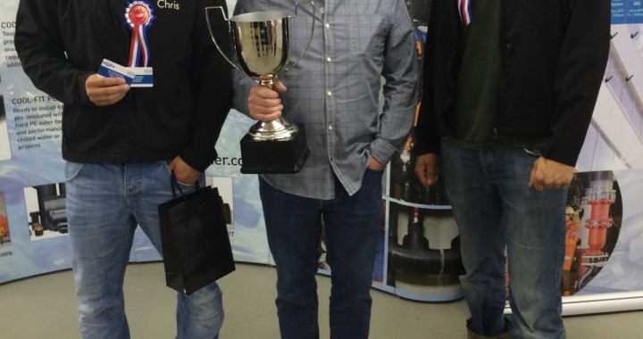 The Men had to create a P and a C out of different pipe materials, carbon steel, plastic and ABS with different joints, fusion welds and ABS joints, and clip it up on a board with the correct tolerances. They were timed and then their work was judged on presentation, team work and quality.